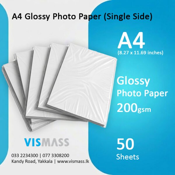 A4 Glossy Photo Paper 200gsm Single Side – 50 Sheets