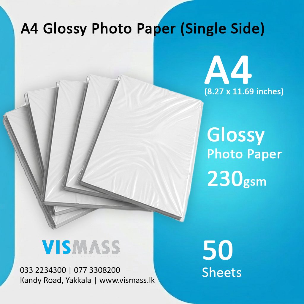 SEO: A4 Photo Paper Sri Lanka, 230gsm Glossy Paper Price, Single Side Photo Paper Colombo, Inkjet Photo Paper 50 Sheets.