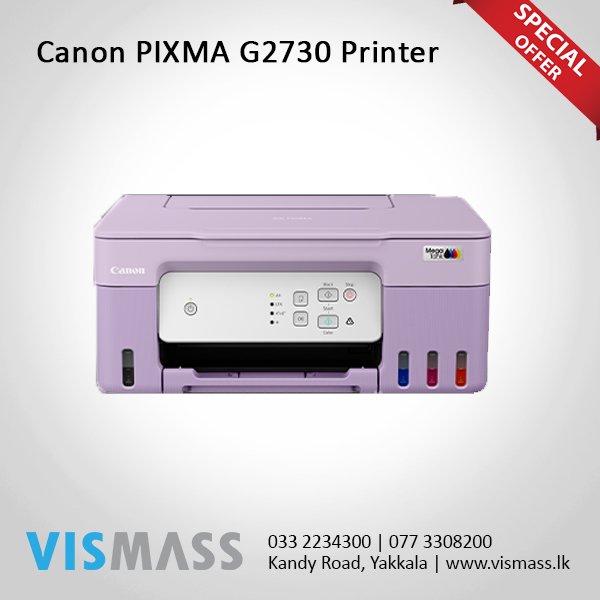 SEO: Canon G2730 Price Sri Lanka, Purple Canon Printer Colombo, Canon G2730 Discount Vismass, All In One Ink Tank Printer Sri Lanka.