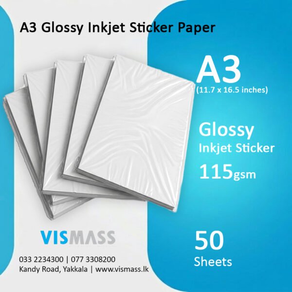 A3 Glossy Inkjet Sticker Paper 115gsm – Sheets 50